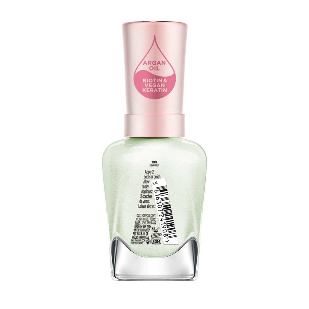Butyl Acetate, Ethyl Acetate, Nitrocellulose, Acetyl Tributyl Citrate, Adipic Acid/Neopentyl Glycol/Trimellitic Anhydride Copolymer, Isopropyl Alcohol, Stearalkonium Bentonite, Acrylates Copolymer, Synthetic Fluorphlogopite, Parfum/Fragrance, n-Butyl Alcohol, Silica, Diacetone Alcohol, Argania Spinosa Kernel Oil, Hexanal, Sorbic Acid, Alcohol Denat., Lithothamnion Calcareum Extract, Tin Oxide, Phosphoric Acid, Prunus Armeniaca (Apricot) Kernel Oil, Tetramethyl Acetyloctahydronaphthalenes, Mannitol, Solum Diatomeae/Diatomaceous Earth/Terre de diatomées, Linalyl Acetate, Chenopodium Quinoa Seed Extract, Hydrolyzed Cicer Seed Extract, Lens Esculenta (Lentil) Seed Extract, Zinc Sulfate, Biotin, Tocopherol, [May Contain/Peut Contenir/+/-: Titanium Dioxide (CI 77891), Yellow 5 Lake (CI 19140), Ferric Ammonium Ferrocyanide (CI 77510), Iron Oxides (CI 77491, CI 77492, CI 77499), Red 6 Lake (CI 15850)].