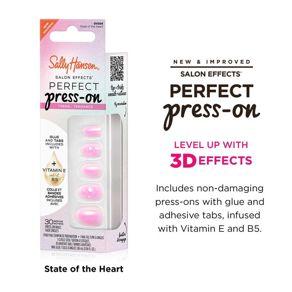 Get ready to fall head over heels! The NEW Sally Hansen Perfect Press On’s collection features 4 dreamy designs from holographic magic, mesmerizing cat-eye textures, and 3D accents that pop—this romantic collection isn’t just cute, it’s next level fabulous.